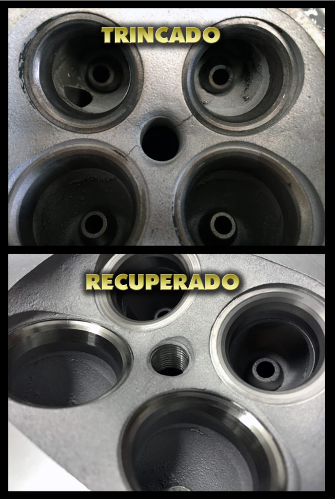 A Master & Cia possui maquinário de ponta e profissionais qualificados para o serviço. No processo de recuperação usinamos a trinca, soldamos, colocamos novas sedes de válvula e já deixamos a rosca de vela com 10mm (cabeçote das motos até 2012 são de 12mm), deixamos ele pronto para receber as peças novas, válvulas, retentores, etc. Utilizamos uma liga de solda no qual é um material resiste o choque térmico, onde neste caso suporta a dilatação e retração do material, com isso não acontece mais as trincas, você pode ver pela foto, fazemos essa recuperação em grandes quantidades, em média de 40 cabeçotes por semana.