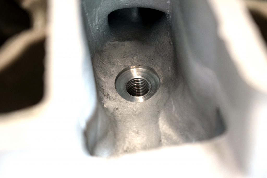 Recuperamos cabeçotes das motos CB300/XRE300, geralmente acontece que eles trincam na rosca da vela, a Master faz uma recuperação conforme a foto abaixo: