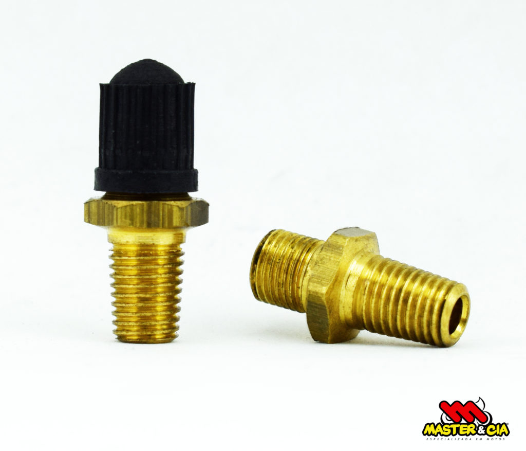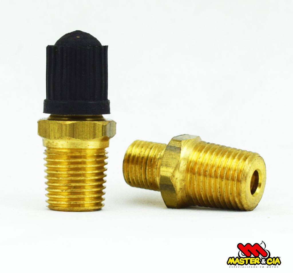 As válvulas de gás (ou bicos de gás) Master & Cia, são produzidas em latão de alta resistência à quebra, com roscas cônicas nas medidas de 1/8 NPT e 1/16 NPT que facilitam a vedação e rosqueamento das mesmas no amortecedor traseiro.